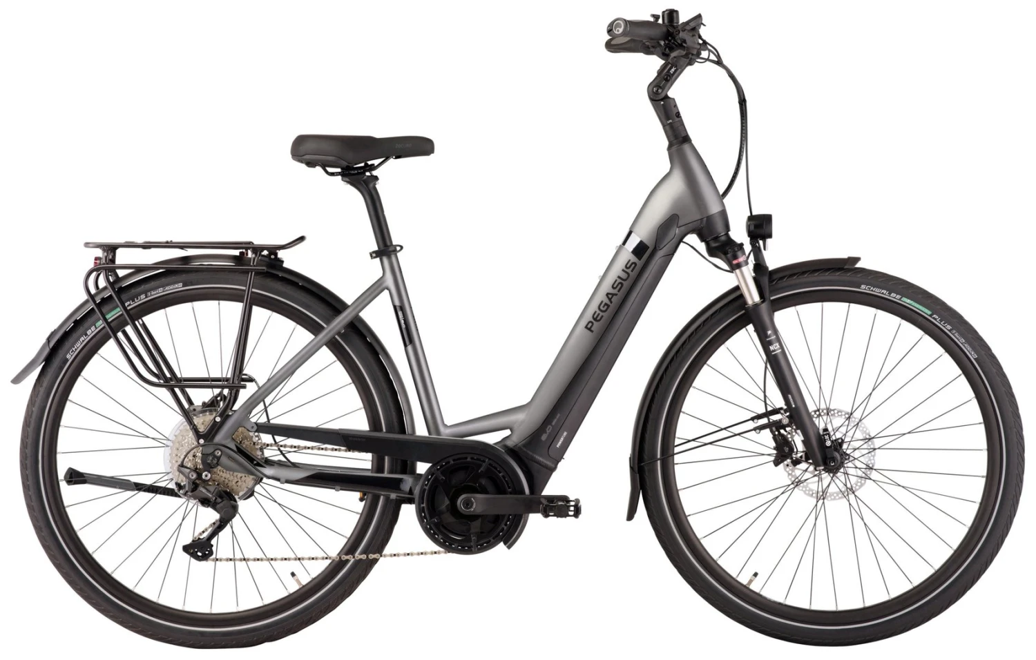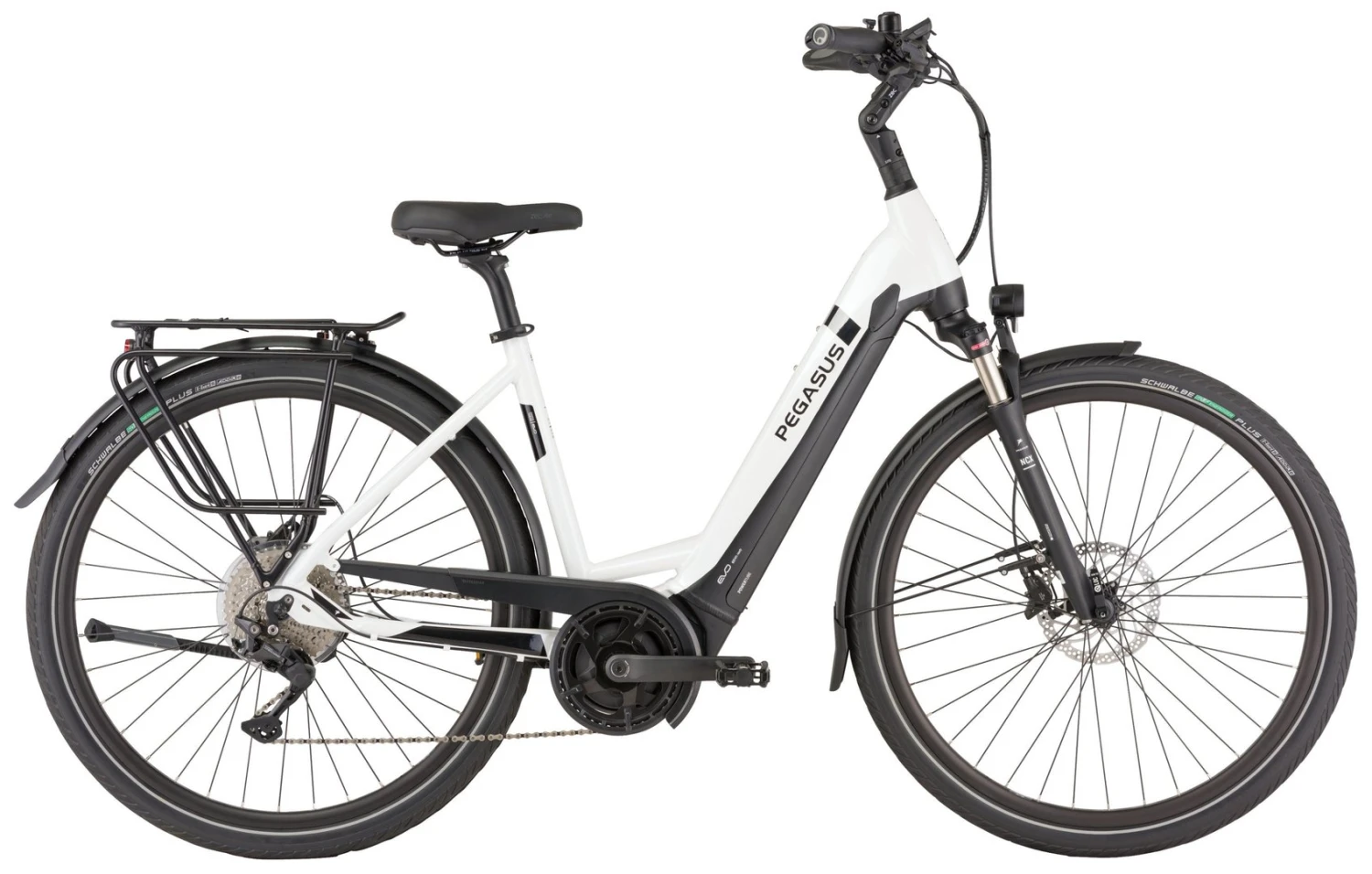 Hydroforming 6061 Alu-Rahmen mit tapered Steuerrohr, NCX-32-DS Federgabel, Deore 10-Gang Schaltwerk, Schalthebel und Zahnkranz (11-42), Tektro Volans Scheibenbremsen mit 2/4-Kolben und 180mm Bremsscheiben, Andra-25 Hohlkammerfelgen, Bosch Performance Mittelmotor 250W/65Nm, integrierter 400Wh (Serie), 500Wh oder 625Wh (Aufpreis) Akku 36V Li-Ion, Energizer Plus Reifen 55-622, Fuxon FS-50 LED-Lampe mit 50 Lux, 12 Volt Lichtanlage, Zecure Sattel, Sattelstütze, Lenker und verstellbarer UP-Vorbau, zulässiges Gesamtgewicht: 180 kg